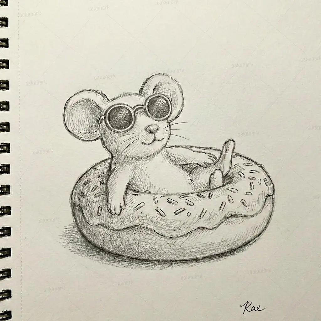 This charming design features a tiny white mouse lounging in a strawberry-frosted donut floatie, complete with colorful sprinkles and a pair of stylish miniature sunglasses. Because each piece is handmade, the mouse’s relaxed expression and the placement of every sprinkle are one of a kind. Whether displayed as a summer vacation keepsake, a unique desk companion, or a whimsical gift for someone who loves the beach, this is a tiny work of art designed to bring smiles all year round.