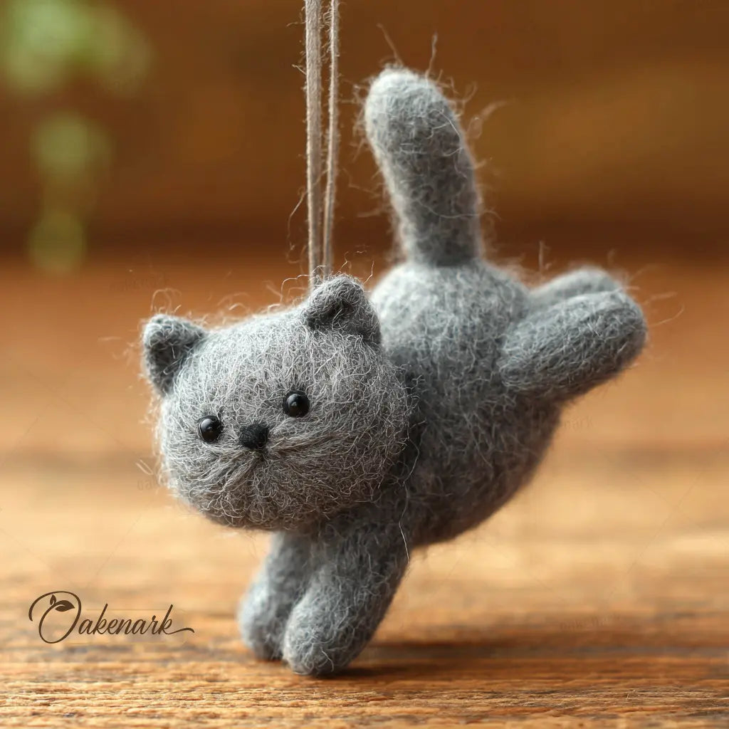 Bring a touch of playful energy to your daily commute with our Leaping Grey Cat Ornament. This handcrafted needle felted accessory is an OakenArk original designed to add a whimsical and joyful spirit to your car or home. Every cat is meticulously sculpted by hand using 100 percent natural wool felt, ensuring premium artisan quality and a beautiful, fuzzy texture that captures the essence of a real kitten.