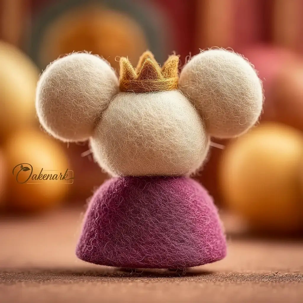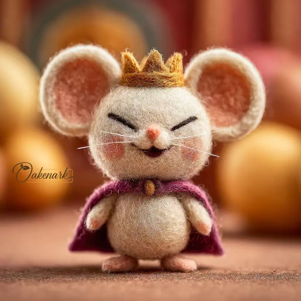 Restore balance to your miniature kingdom with the sweet and benevolent Royal Queen Mouse. Designed as the charming counterpart to our infamous Grumpy Mouse King, she rules with kindness and love rather than frowns. This handcrafted needle felted art piece is an OakenArk original that brings regal charm and a touch of warmth to any display. Every piece is meticulously sculpted by hand using 100 percent natural wool felt, ensuring a premium artisan quality and a soft, tactile texture.