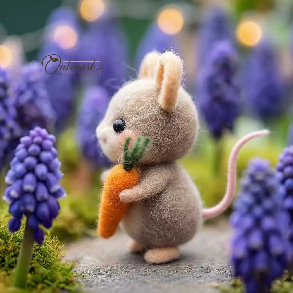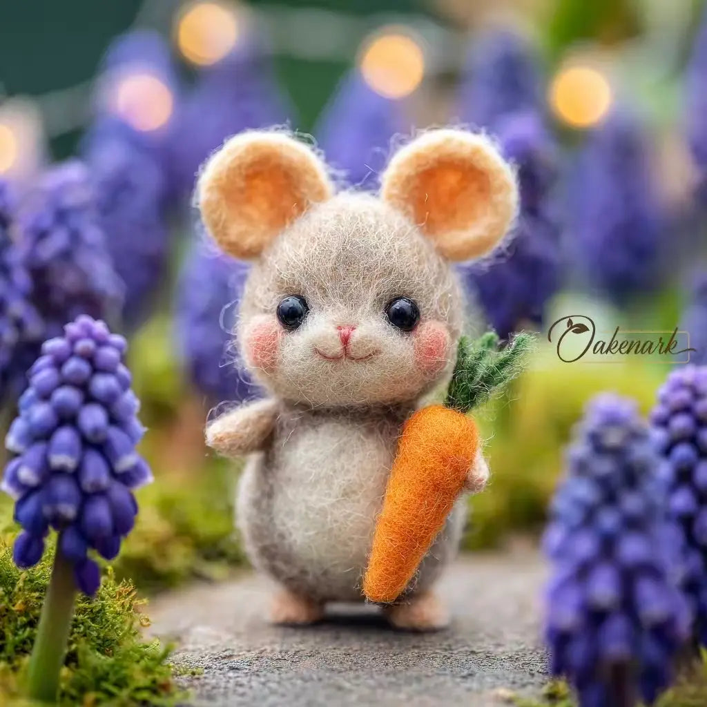 Welcome the magic of the garden into your home with the Spring Mouse Holding Carrot. This handcrafted needle felted art piece is an OakenArk original designed to capture the playful spirit of a quiet morning in the meadow. Every mouse is uniquely sculpted by hand using 100 percent natural wool felt ensuring a premium artisan quality and a soft, organic texture that celebrates sustainable craftsmanship.