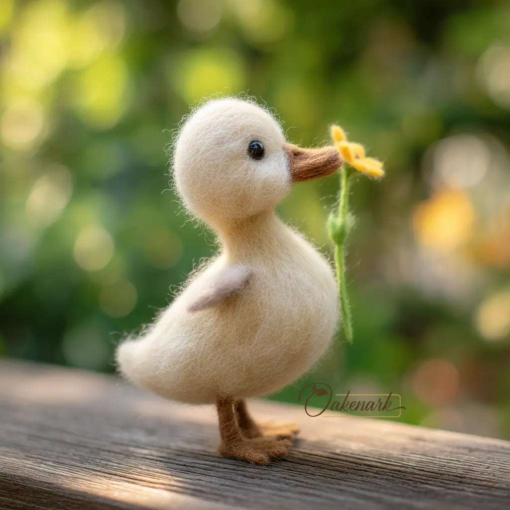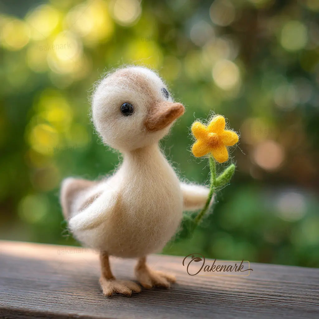 Holding a vibrant handfelted yellow flower and featuring a gentle curious expression this little duckling is the perfect companion for a sunlit windowsill or a nature inspired workspace. It serves as a heartwarming reminder of simple joys and the warmth of spring. Whether purchased as a unique gift for a loved one or as a charming addition to your own collection this is a tiny work of art meant to be cherished for years to come.
