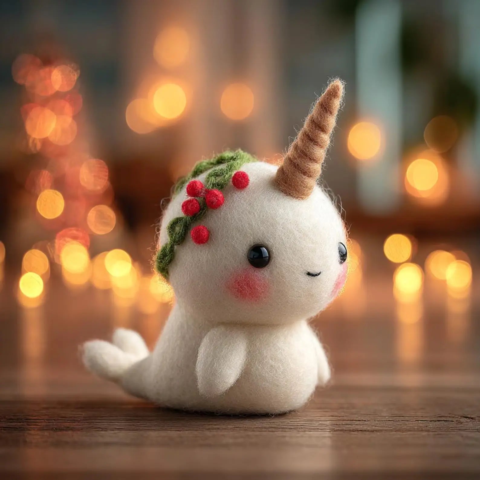 - Handmade Nature: Since each piece is needle-felted by hand, there may be slight differences in the facial expression or the shape of the wreath. This makes your narwhal truly one-of-a-kind.