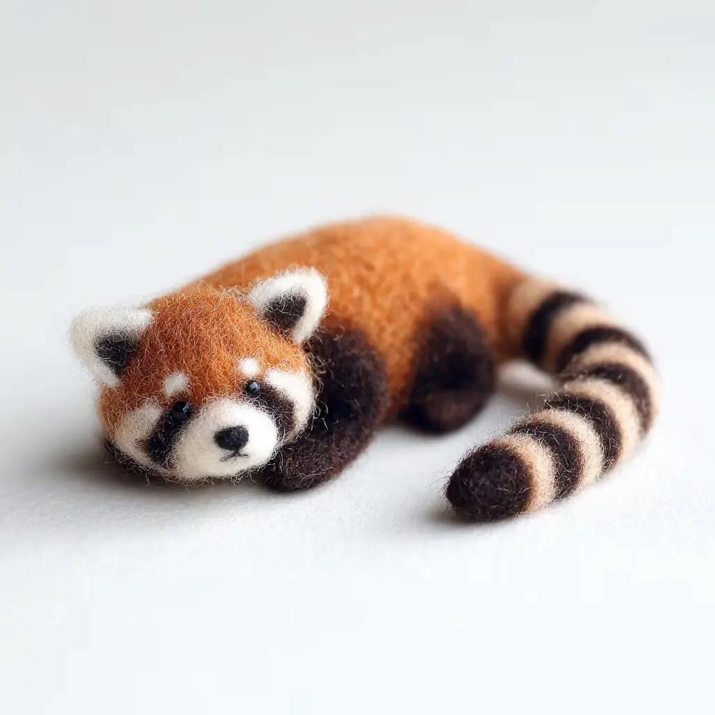 Felted Sleeping Red Panda Figurine - Handcrafted Forest Treasure