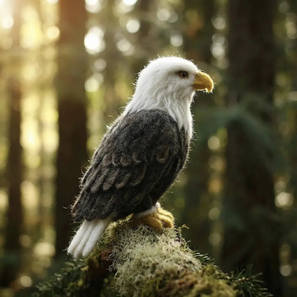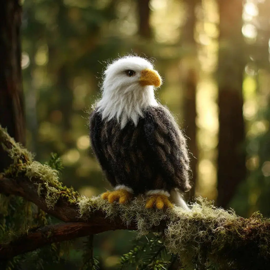 Capture the spirit of the wild with this majestic Needle Felted Bald Eagle. Meticulously handcrafted from 100% sustainable wool, this lifelike figurine stands as a symbol of freedom and strength. The intricate needle-felting technique creates realistic feather textures and a piercing gaze, making each bird a unique piece of fiber art. Whether displayed on a mantelpiece or gifted to a nature enthusiast, this eco-friendly sculpture brings the beauty of the American wilderness into your home.