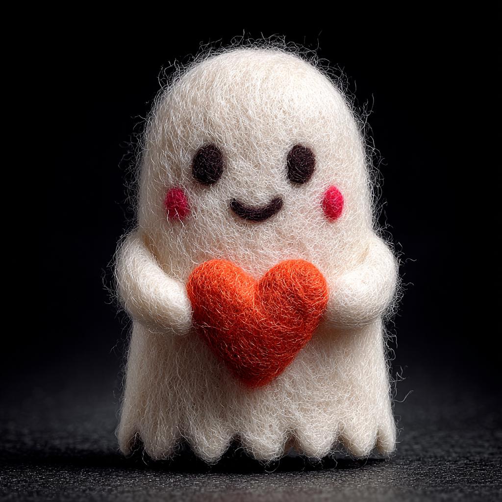 Spooky, But Make It Sweet. Who says ghosts have to be scary? Meet the OakenArk Friendly Spirit—a whimsical, handcrafted little ghost who’s here to haunt your heart instead of your house. Meticulously needle-felted with the softest white wool, this charming fellow features a cheerful smile, rosy pink cheeks, and is clutching a vibrant red heart in a warm embrace.