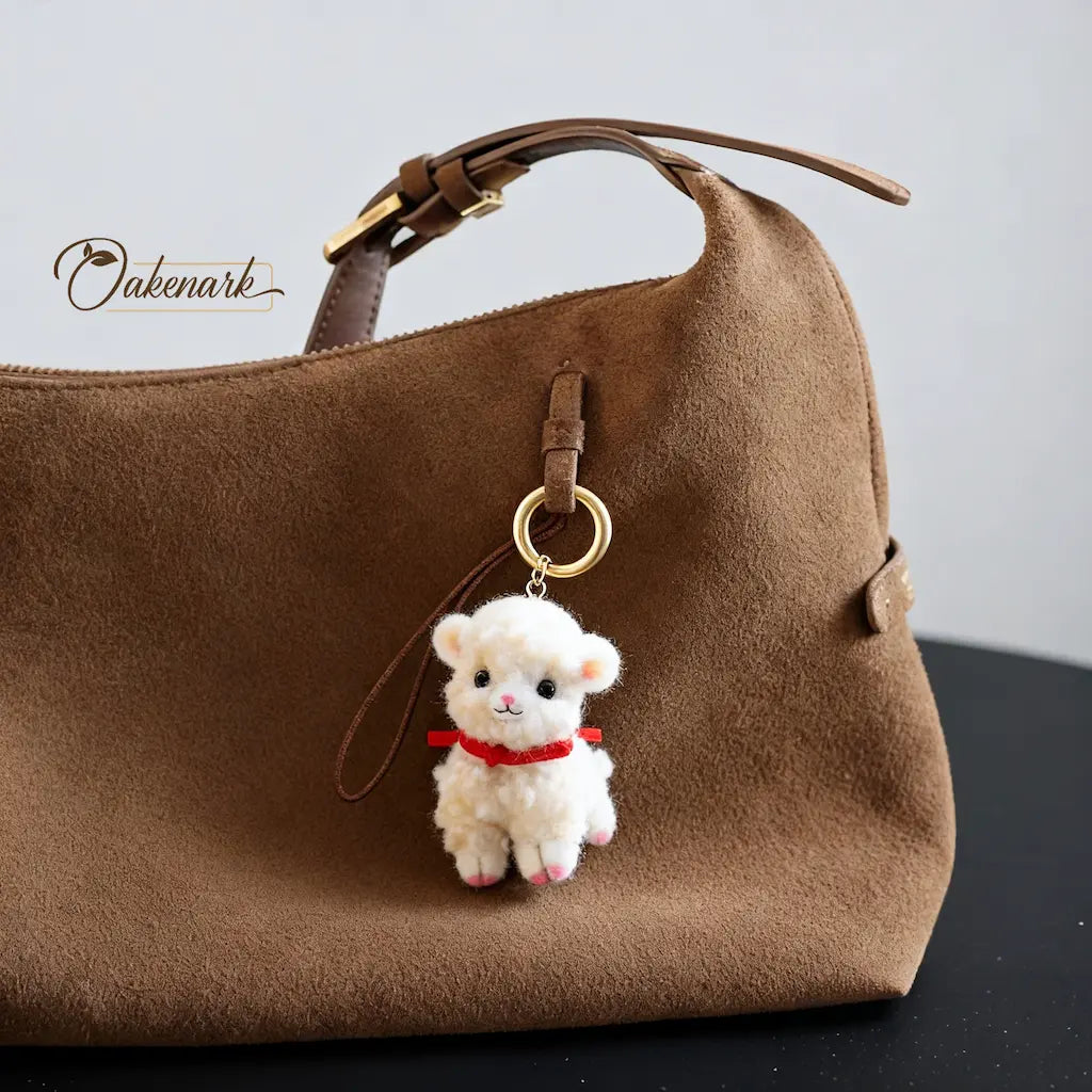 The design is elevated by a bright red ribbon collar that adds a pop of cheerful color. It comes securely attached to a premium golden ring and a sleek brown strap, making it ready to clip onto your accessories immediately. Please note that while this is a functional accessory, it remains a delicate art piece. Because each lamb is individually handmade, its unique expression and specific curls make your personal companion truly one of a kind.