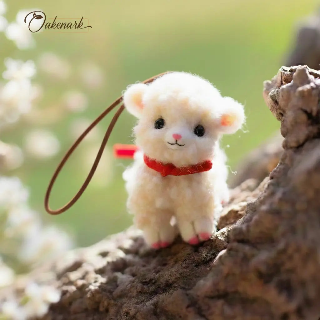 Felt Sweet Lamb Bag Charm with Red Ribbon